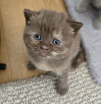 We have no kittens available at this time. We have 3 litters planned for 2026 with the first being in the spring from our gorgeous lilac tortie and white girl, Iris, who gained her champion title with TICA last year. The 2nd litter will be from our beautiful (and super sweet) chocolate girl, Dolce, in the late spring/early summer. Both of these litters will be sired by our handsome chocolate boy, Bruno,who not only earned his Double Grand Champion title with TICA, but was also awarded the title of  BEST BRITISH SHORTHAIR for 2024 in TICA’s north east region. We are so proud of him! Our 3rd litter of 2026 will be from our “keeper girl” Milly. She is from Iris and Bruno’s 2025 litter. She is a lovely chocolate tortie with amazing markings. She will be bred to a friends male and kittens should be stunning. We will see some tabbies and torbies in this litter.
